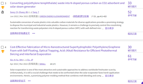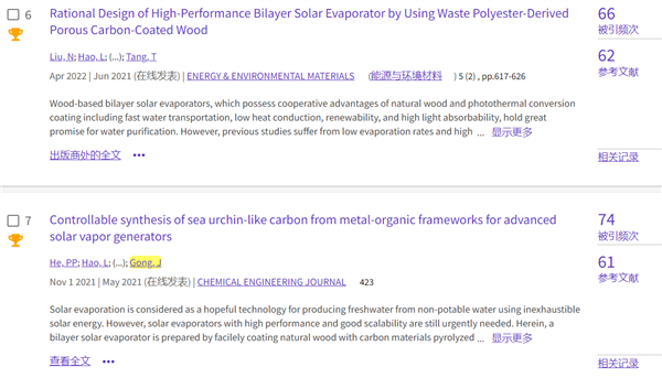 2023年5月,課題組8篇論文入選ESI高被引(top 1%),其中1篇還入選ESI Hot Paper(top 0.1%)