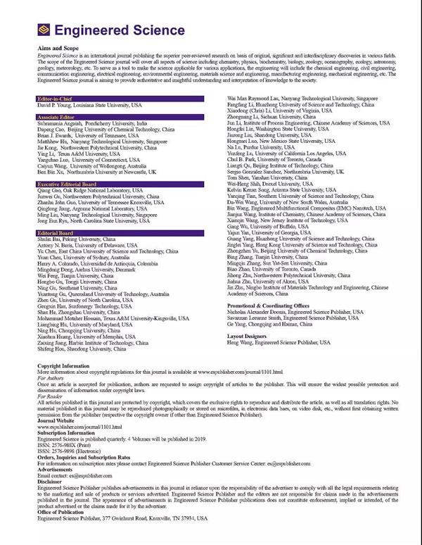熱烈祝賀Engineered Science期刊第6期論文正式上線