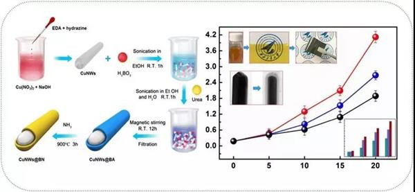 Use of BN-coated copper nanowires in nanocomposites with enhanced thermal conductivity and electrical insulation