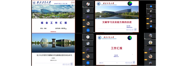 本次組會首先由四名本科畢設同學對畢設課題的研究背景、國內外研究現狀、實驗設計及研究方案等方面進行匯報交流,并提出了下一步的研究計劃和擬完成的工作內容。接下來由九名研究生同學就課題相關的學習內容及研究進展進行了總結匯報。與會老師和同學們都積極參與到本次交流討論中。