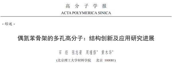 polymers with azobenzene backbone (Azo-POPs), which are characterized by good chemical stability, high specific surface area, and ease of functionalization and modification, have attracted much attention as they show great application prospects in several fields. Based on the group''s previous work on porous polymers with azobenzene skeleton (Azo-POPs), Shijing has systematically elaborated on the synthesis and application of Azo-POPs, and the related article has been published in the Acta Polymerica Sinica. (Shi, J.; Zhang, Z. H.; Zhou, J. X.; Huang, M. H. Progress in azobenzene porous organic polymers: innovative structure evolutions and applications. Acta Polymerica Sinica, doi: 10.11777/j.issn1000-3304.2024.24040)
