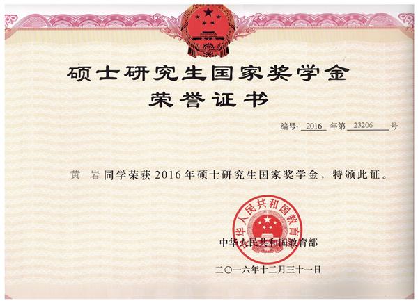 2015級碩士研究生黃巖獲得2016年國家獎學金