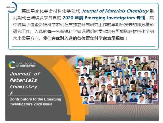 恭喜課題組組長張佳楠教授入選英國皇家化學(xué)會(huì)材料領(lǐng)域 Journal of Materials Chemistry A 2020 年度 Emerging Investigator