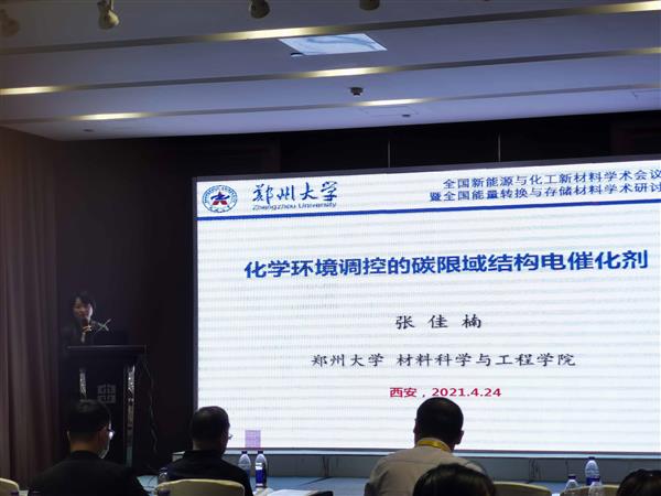 張佳楠老師帶隊參加了于4月24日在西安舉行的第六屆全國新能源與化工新材料學術會議,張老師主持并在會議中做了題為《化學環境調控的碳限域結構電催化劑》的精彩報告!