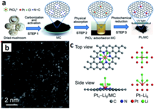 ▲圖6. 原子分散Pt促進N摻雜多孔碳用于鋰離子電池。a-c) Pt1/MC的合成流程圖,HAADF-STEM圖,幾何結構示意圖。