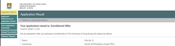 恭喜2020級本科敖季同學獲得香港大學錄取通知(全額獎學金)