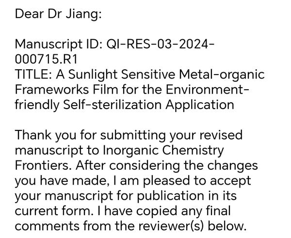 恭喜2023級博士高潔,郝老師,董老師第1篇文章被Inorganic Chemistry Frontiers(IF7.0,中科院1區)順利接收