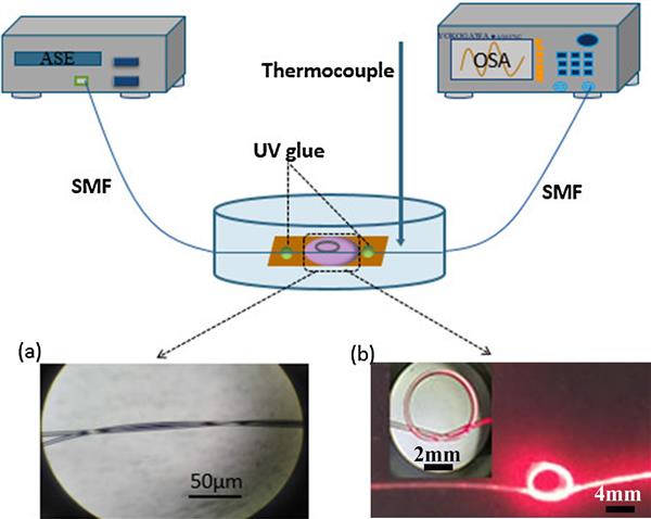 利用PDMS封裝微納米光纖結型諧振腔,并實現溫度傳感。