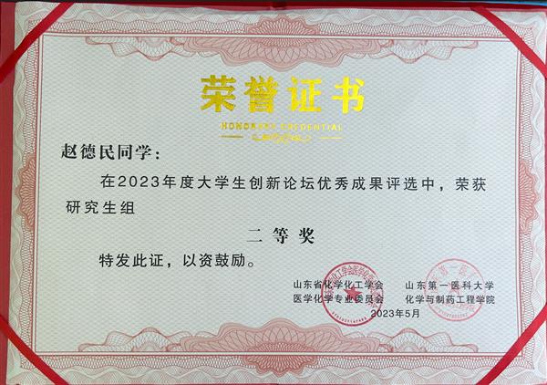 祝賀趙德民在2023年大學(xué)生創(chuàng)新論壇獲得研究生組二等獎!