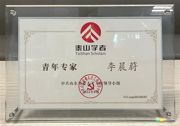 李晨蔚老師受聘山東省“泰山學者”青年專家