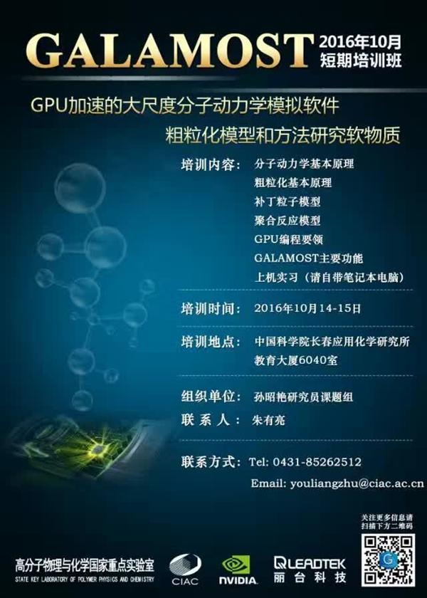 2016年10月14-15日,由長春應化所孫昭艷研究員課題組承辦的GALAMOST首屆短期培訓班在長春應化所舉行,參會人員包括來自全國各地高校和研究所的師生70余人。劉鴻在培訓班上做了關于反應模型的專題報告。