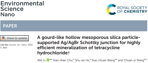 鹽酸四環素(TTC)是一種具有生物毒性的抗生素,會對生態系統造成嚴重破壞。近年來,鑒于光催化技術獨特的優勢,被認為是解決這一問題的一種有效手段。然而,光響應較弱、電荷傳導較差及目標物富集能力不強是傳統光催化劑普遍存在的問題,嚴重影響其對目標污染物催化降解性能。為此,本研究設計并制備了一種具有超高BET比表面積(1181.57m2/g)及強光吸收能力的葫蘆狀中空介孔SiO2顆粒,并將其用于負載Ag/AgBr肖特基結。光電化學表征顯示,由于Ag/AgBr肖特基結及氨基修飾葫蘆狀中空介孔SiO2微粒協同作用,該光催化劑光響應性及界面電荷傳導特性均顯著提升,并促進·OH活性自由基的有效生成。最終優化后的催化劑(40wt%HSAA)表現出顯著增強的TTC催化降解活性(3.79×10-2min-1),是商用P25性能的28.3倍,是純AgBr的 12.8倍。進一步研究表明,該催化劑對于TTC的礦化能力同樣得到顯著提升,經過90min/150min的光照,約72.04%/81.17%的TTC被礦化,明顯高于P25及其它Ag/AgBr基光催化劑的礦化能力,可以有效防止TTC副產物的毒性影響,對于有效解決生態系統中抗生素污染物具有一定研究意義。