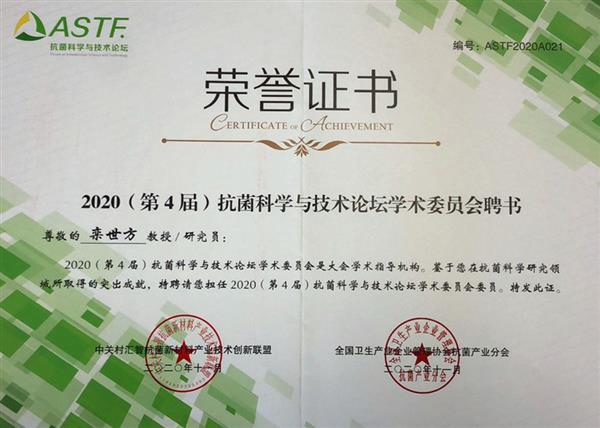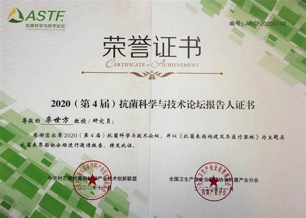 2020年,師生共同受邀參加第4屆抗菌科學與技術論壇并獲得榮譽證書