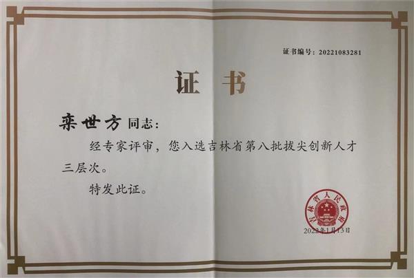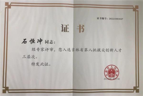 2022年,祝賀欒世方和石恒沖兩位研究員獲得吉林省第八批拔尖創新人才