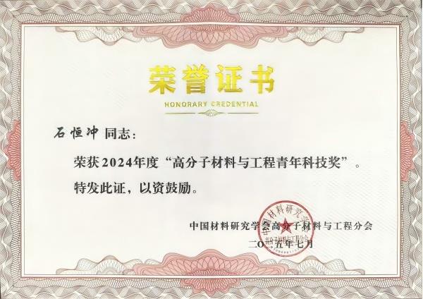 2025年,石恒沖研究員獲得2024年度高分子材料與工程青年科技獎