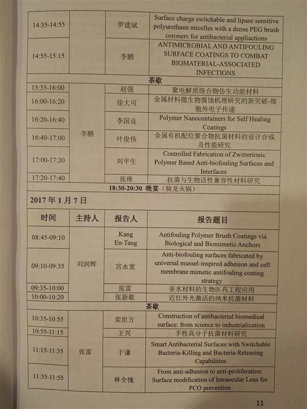 受邀參加抗菌抗污材料前沿研討會(huì),作《Construction of antibacterial, anticoagulant biomedical surface: from science to industrialization》報(bào)告