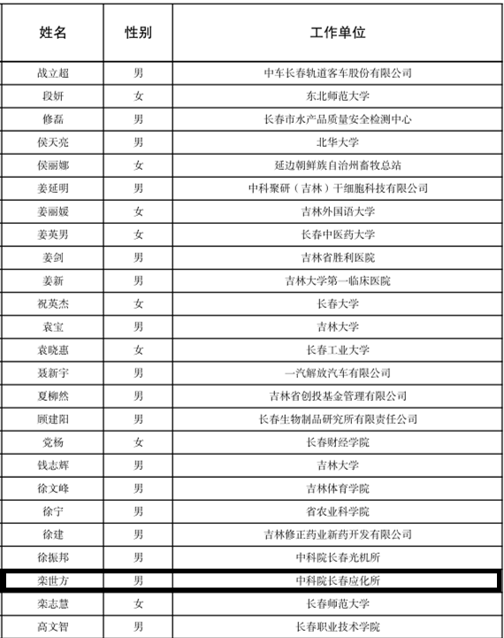 2021年,祝賀欒世方研究員和石恒沖研究員獲得吉林省第八批拔尖創新人才