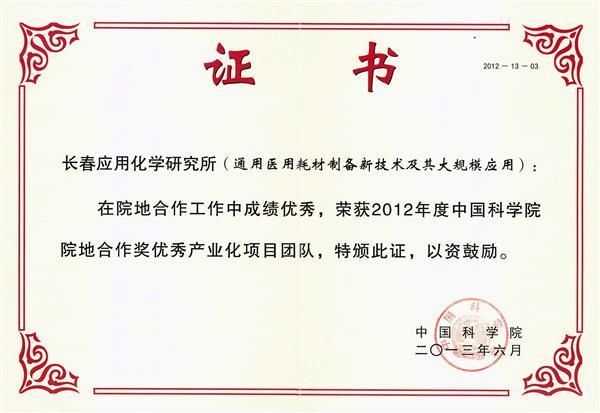 2013年,中國科學院院地合作獎優秀產業化項目團隊