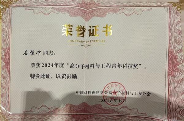 2025年,石恒沖研究員獲得2024年度高分子材料與工程青年科技獎