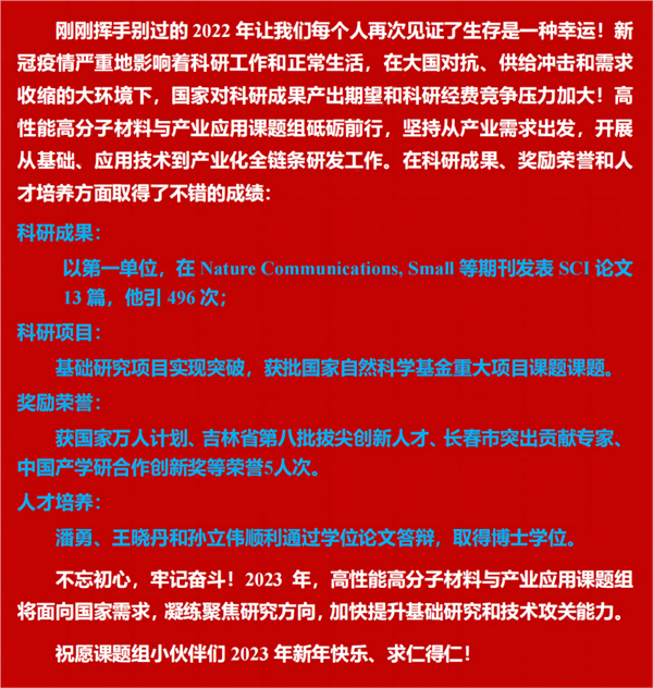 【2023】高性能高分子材料與產(chǎn)業(yè)應(yīng)用課題組新年快樂!