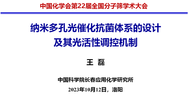 【2023】王磊副研究員受邀在中國化學會第22屆全國分子篩學術大會和國際前沿材料大會作報告