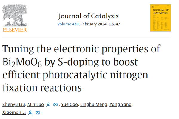 祝賀劉振宇同學(xué)的文章“Tuning the electronic properties of Bi 2 MoO 6 by S-doping to boost efficient photocatalytic nitrogen fixation reactions”被 Journal of Catalysis(化學(xué)一區(qū)top期刊) 接受