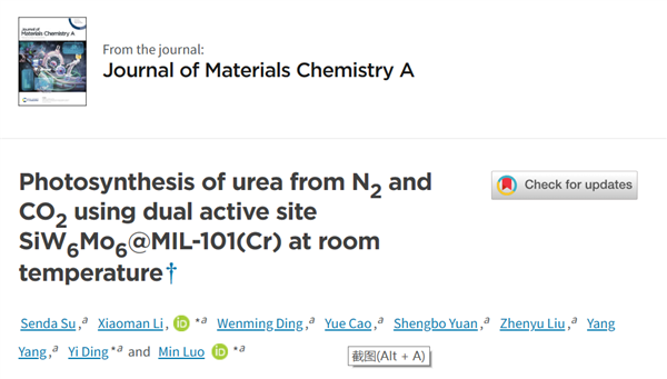祝賀蘇森達同學光催化尿素文章被 《Journal of Materials Chemistry A》接受
