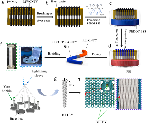 斷指再植手術(shù)是治療斷指的最有效方法,但術(shù)后血管危象的發(fā)生率較高,可能導(dǎo)致再植失敗。傳統(tǒng)的血管危象監(jiān)測(cè)依賴于醫(yī)護(hù)人員的定時(shí)觀察和紅外測(cè)溫,存在精度低、實(shí)時(shí)性差等問(wèn)題。為了解決這一問(wèn)題,本研究開(kāi)發(fā)了一種基于多壁碳納米管紗線(MWCNTY)的混合熱電-摩擦電紗線(BTTEY),并通過(guò)針織技術(shù)將其編織成雙羅紋襯緯熱電-摩擦電織物(DTWL-TTEG)。該織物具有優(yōu)異的熱電和摩擦電輸出性能,熱電功率密度在30 K溫差下可達(dá)89 μW·m?2。織物柔軟、透氣且具有良好的生物相容性,能夠極短時(shí)間內(nèi)響應(yīng)溫度變化并具有極高的靈敏度。基于DTWL-TTEG,開(kāi)發(fā)了智能報(bào)警和術(shù)后恢復(fù)監(jiān)測(cè)系統(tǒng),能夠?qū)崟r(shí)監(jiān)測(cè)血管危象并提供及時(shí)報(bào)警,同時(shí)可用于斷指術(shù)后恢復(fù)的監(jiān)測(cè)。該研究為熱電效應(yīng)與摩擦電效應(yīng)的結(jié)合提供了新的方向,展示了其在醫(yī)療保健和安全預(yù)警領(lǐng)域的巨大應(yīng)用潛力。