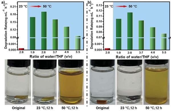 圖1 希夫堿環氧樹脂在不同溫度下降解性能對比