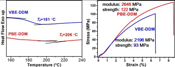 圖2 希夫堿環氧樹脂的熱學、力學性能對比