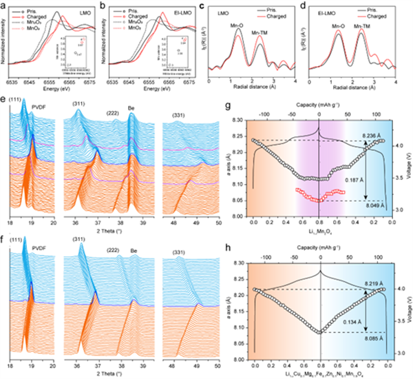 圖2 EI-LMO的晶格收縮和Mn-O鍵的強化