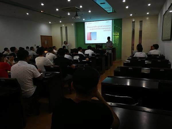 8月6日,荷蘭Groningen大學Katja Loos教授應課題組邀請訪問常州大學材料學院,并為師生作了題為“From metallic gyroid structures to piezoelectric nanoporous networks”的學術報告。報告結束后,Katja Loos教授與學院師生就研究內容進行了熱烈的交流討論,拓展了參會師生的科研思路和學術視野,促進了師生對荷蘭Groningen大學學術水平、研究領域與留學環境的認識,贏得了在場師生的廣泛認同。曹崢博士自2011年在Loos教授組從事博后研究以來,雙方一直進行合作交流,在Biomacromolecules、Soft Matter等期刊發表共同署名文章5篇,今后將進一步深入在科研方面的交流合作。