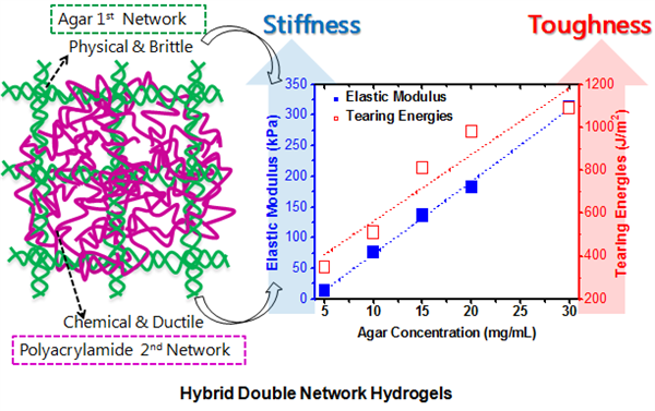 of new stiff and tough hydrogels using hybrid physical and chemical networks.