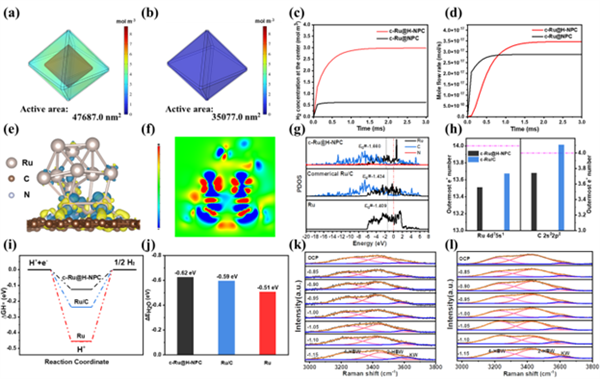 此外,進(jìn)一步的原位 Raman 光譜研究表明,雜化效應(yīng)還增強(qiáng)了水在 Ru 上的吸附能,從而加速了 Volmer 反應(yīng),提高了 HER 活性。