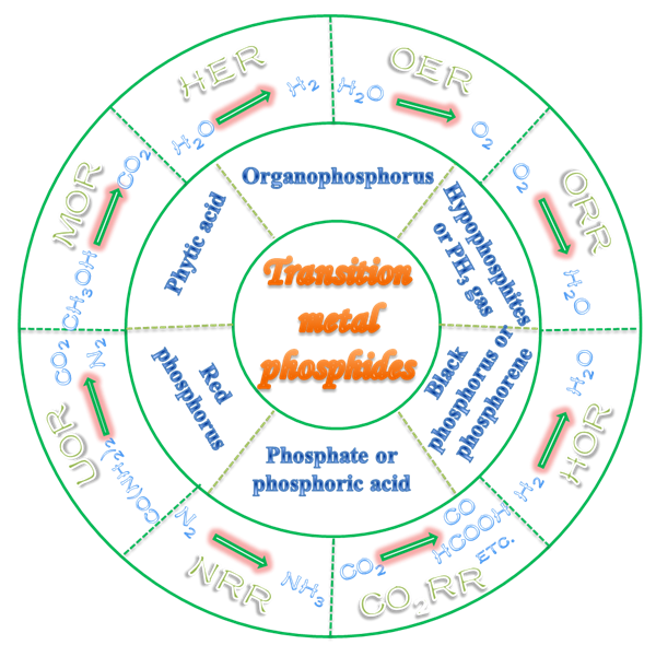 過渡金屬磷化物(TMPs),由于其獨特的物理化學(xué)性質(zhì),在能源電催化領(lǐng)域具有廣泛的應(yīng)用前景。因此,探究過渡金屬磷化物的電催化機(jī)制對于開發(fā)新型、廉價、高活性、長壽命的催化體系具有重要的科學(xué)指導(dǎo)意義。另一方面,系統(tǒng)總結(jié)現(xiàn)有過渡金屬磷化物的合成機(jī)理、催化應(yīng)用及存在問題,對于推進(jìn)過渡金屬磷化物規(guī)?;苽浼皩嶋H應(yīng)用具有非常重要的意義。為此,在前期課題組研究基礎(chǔ)上,本評述性論文結(jié)合國內(nèi)外過渡金屬磷化物及電催化的最新研究進(jìn)展,深入探討了過渡金屬磷化物的活性起源及其在析氫反應(yīng)(HER)、析氧反應(yīng)(OER)、氧還原反應(yīng)(ORR)、氫氧化反應(yīng)(HOR)、醇氧化(AOR)、氮還原反應(yīng)(NRR)、二氧化碳還原反應(yīng)(CO2RR)等能源電催化領(lǐng)域的應(yīng)用;同時,基于磷的來源系統(tǒng)地歸納和總結(jié)了系列過渡金屬磷化物的合成方法及合成機(jī)制;最后,針對當(dāng)前過渡金屬磷化物領(lǐng)域中存在的系列問題、挑戰(zhàn)及未來發(fā)展方向進(jìn)行了分析和展望。該評述性論文有望為今后開發(fā)高活性過渡金屬磷化物催化材料提供理論依據(jù)及實驗參考。