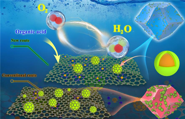 近日,武漢理工大學何大平教授和木士春教授合作在Applied Catalysis B: Environmental上發表了題為“Size-controlled Engineering of Cobalt Metal Catalysts through A Coordination Effect for Oxygen Electrocatalysis”的研究論文(DOI: 10.1016/j.apcatb.2022.121766),探究了配位有機物對ZIF-67碳化產物中Co納米顆粒的尺寸控制作用。研究人員將配位有機物加入ZIF-67的合成體系中,旨在利用配位有機物對Co離子的配位效應,實現了碳化過程中對Co的限域作用,降低了Co原子的聚集程度。形貌和結構表征表明,在熱處理過程中由配位有機物調節的ZIF,其衍生產物中Co 的團聚顯著減弱,這主要歸功于配位有機物強大的過渡金屬配位能力。電化學性能測試進一步表明,經配位有機物修飾ZIF-67衍生的催化劑大大提高了其氧電催化活性。