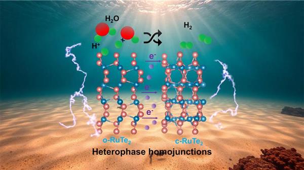 在這一關鍵領域,武漢理工大學的科研團隊取得了突破性進展。他們創新性地構建了一種由正交晶系和立方晶系釕碲化合物(RuTe2)組成的異質同質結結構(記為m-RuTe2)。這一獨特設計利用兩相間的工作函數差異,成功誘導形成了內建電場。該內建電場不僅驅動了電子轉移與電荷重新分布,更優化了催化劑對活性中間體的吸附行為,從而顯著提升了HER催化活性。實驗結果顯示,m-RuTe2在實現10 mA cm-2電流密度時,僅需35 mV的過電位,這一性能不僅超越了單相RuTe2(正交晶系RuTe2需62.3 mV,立方晶系RuTe2需164.3 mV),更在堿性條件下優于商業鉑催化劑。