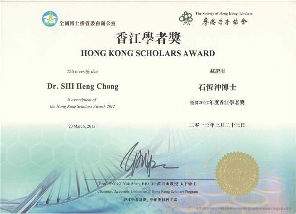 2013獲香港學(xué)者學(xué)會(huì)頒發(fā)“香江學(xué)者”獎(jiǎng)。