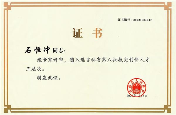 2021年獲吉林省拔尖創新人才
