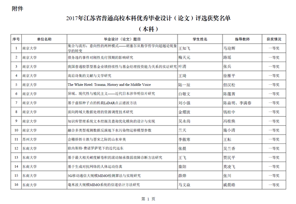 梁爽獲2017年江蘇省普通高校本專科優(yōu)秀畢業(yè)設(shè)計(論文)一等獎