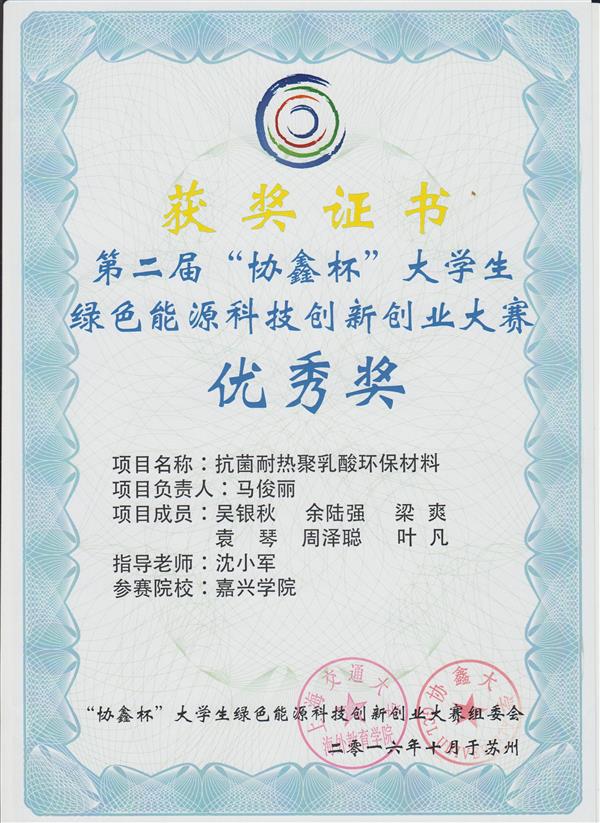 2016-10-10,祝賀課題組本科生在第二屆協鑫杯-綠色能源科技創新大賽獲獎。