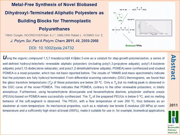 keywords:aliphatic polyesters; biodegradable; elastomers; metal-free catalyst; polyesters; polyurethanes; renewable; renewable resources; TBD; thermoplastic polyurethane