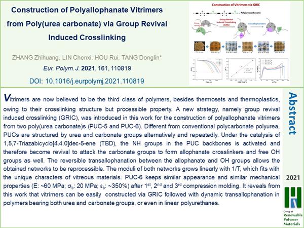 keywords:Poly(urea carbonate), Vitrimer, Transallophanation, Group revival induced crosslinking