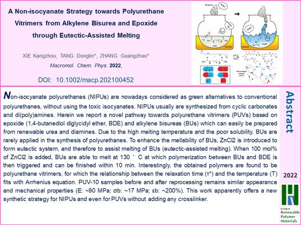 keywords:polyurethanes,non-isocyanate,vitrimers,alkylene bisurea,epoxide,zinc chloride,eutectic-assisted melting