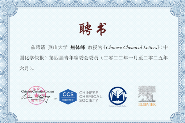 祝賀焦體峰教授入選《Chinese Chemical Letters》中國(guó)化學(xué)快報(bào)第四屆青年編委會(huì)委員!!
