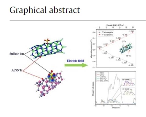 焦體峰教授課題組Science of The Total Environment: Electrically enhanced adsorption efficiency of aluminum nitride nanotube for sulfate ion removal from water