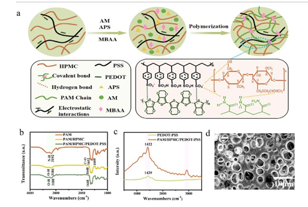 焦體峰教授課題組International Journal of Biological Macromolecules:Hydroxypropyl methyl cellulose reinforced conducting polymer hydrogels with ultra-stretchability and low hysteresis as highly sensitive strain sensors for wearable health monitoring