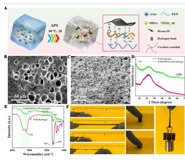 焦體峰教授課題組Chemical Engineering Journal: Ultrastretchable, Self-Adhesive and conductive MXene nanocomposite hydrogel for body-surface temperature distinguishing and electrophysiological signal monitoring