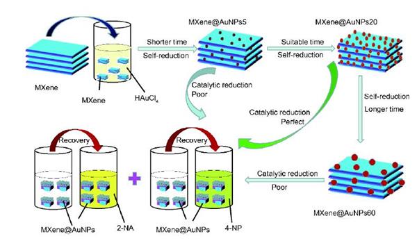 Kaikai Li, Tifeng Jiao*, Ruirui Xing, Guodong Zou, Jingxin Zhou, Lexin Zhang, Qiuming Peng*. Fabrication of tunable hierarchical MXene@AuNPs nanocomposites constructed by self-reduction reactions with enhanced catalytic performances. Science China Materials, 2018, 61(5); 728-736.