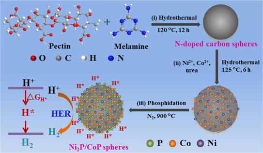 Facile preparation of self-assembled Ni/Co phosphates composite spheres with highly efficient HER electrocatalytic performances.